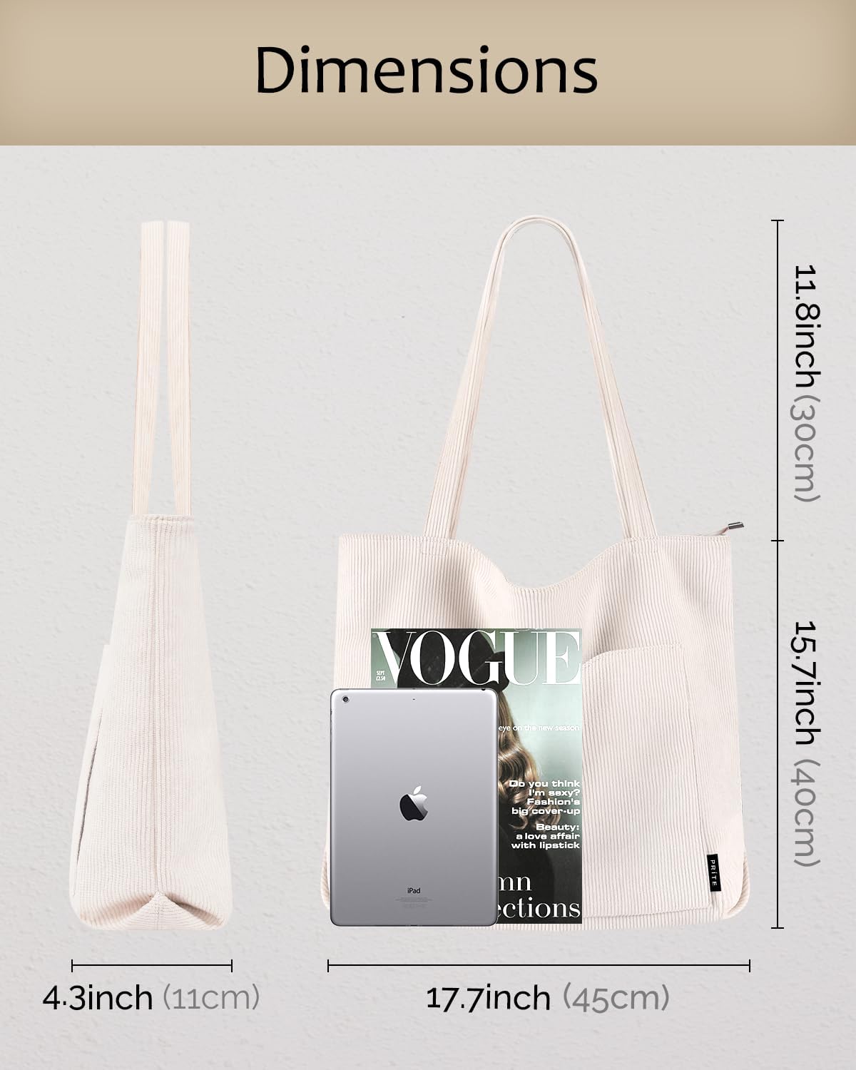 Prite prioritizes quality in every aspect of this tote bag. The corduroy exterior offers a distinctive texture that’s both visually appealing and durable for daily use. The reinforced stitching at stress points ensures long-lasting performance, even when carrying heavier loads. The interior lining is designed to withstand daily wear and tear while making it easy to locate items inside the bag. This attention to detail reflects Prite’s commitment to creating accessories that combine style with substance.