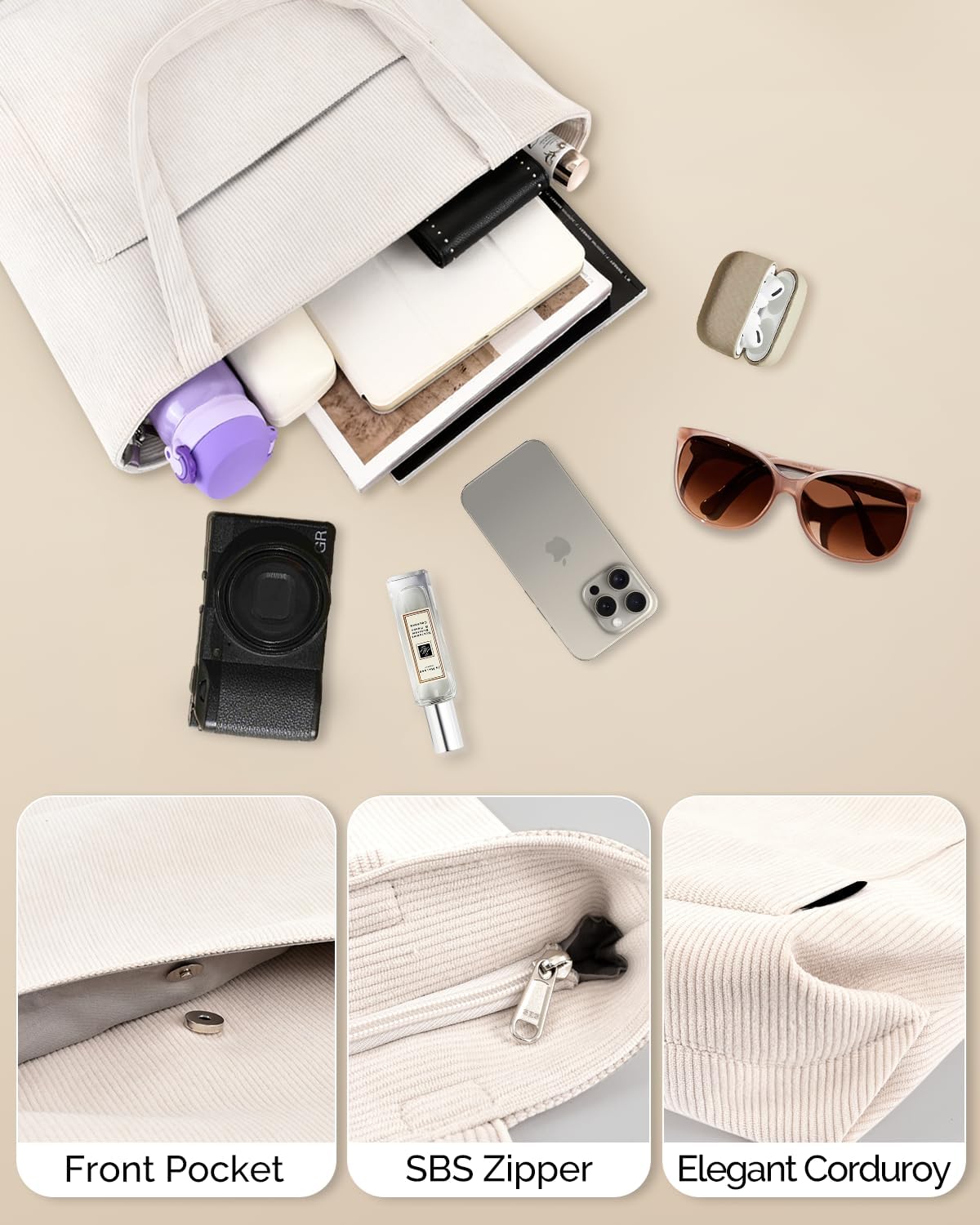 The Prite Corduroy Tote is designed to simplify your daily routine. With dedicated spaces for your essentials and a silhouette that works for virtually any occasion, this bag eliminates the need to switch between different bags for different activities. Its generous capacity accommodates everything from work documents to shopping purchases, while the sturdy construction ensures it maintains its shape and functionality over time. For women seeking a reliable, stylish everyday bag, the Prite Corduroy Tote delivers on all fronts.
