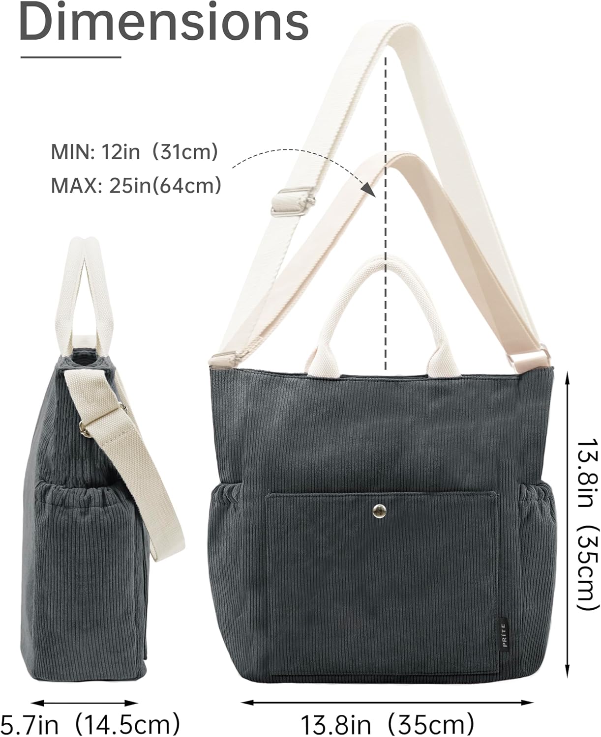 The distinctive corduroy fabric offers both visual and tactile appeal while providing surprising durability. Unlike more delicate materials, this corduroy construction stands up to daily use while maintaining its shape and appearance. The texture adds dimension to your outfit while the neutral design complements virtually any ensemble in your wardrobe. Prite’s attention to quality construction ensures this tote will remain a staple in your collection for seasons to come.