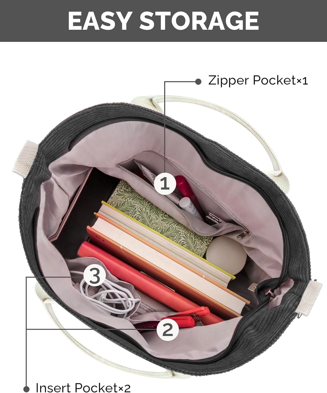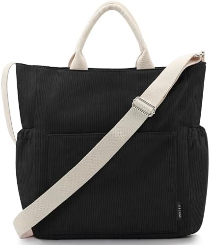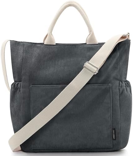 Prite Corduroy Tote Bag – Large Shoulder Bag with Pockets