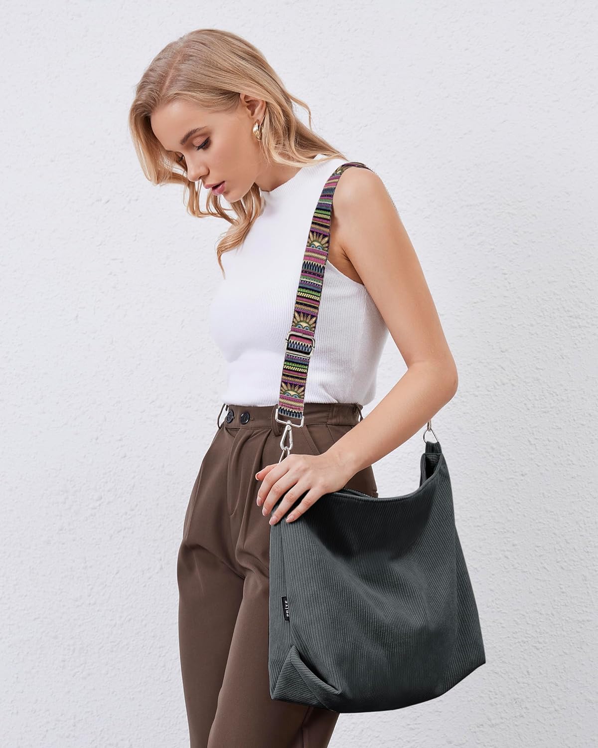 Prite’s commitment to quality is evident in every aspect of this tote bag. From the carefully selected corduroy fabric to the reinforced stitching at stress points, this bag is built to withstand the demands of daily use. The hardware, including the zipper and strap adjusters, is designed for reliability and longevity, ensuring your Prite tote remains a trusted companion for years to come.