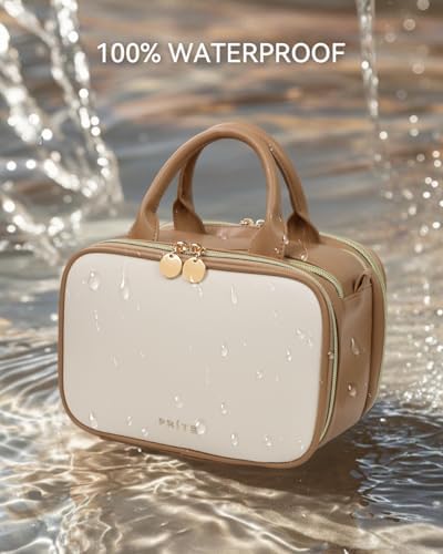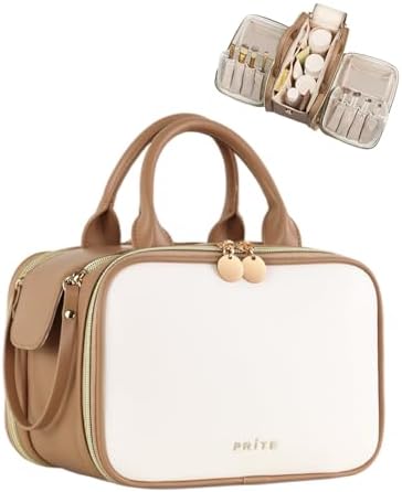 The Prite Travel Makeup Bag combines style and functionality for beauty enthusiasts who demand the best. This premium cosmetic organizer features a spacious design with multiple compartments to keep all your beauty essentials neatly arranged and easily accessible. The elegant beige-brown color complements any style while providing a practical solution for organizing your makeup collection.