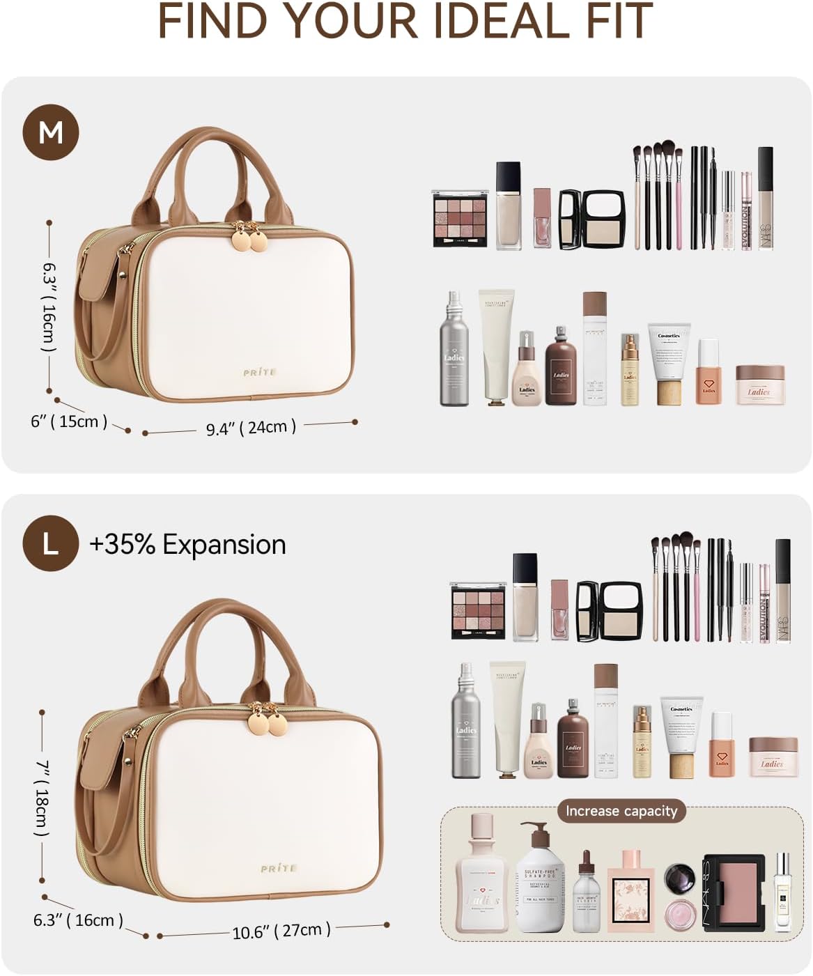The Prite Makeup Bag adapts to your lifestyle with its multifunctional design. Use it as a travel makeup organizer during vacations, a toiletry kit for overnight stays, a bathroom organizer at home, or daily storage for your beauty essentials. Its versatility makes it the perfect companion for all your organizational needs, from travel adventures to everyday use.