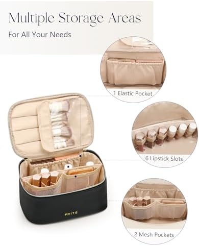 With its generous dimensions, the Prite makeup bag effortlessly accommodates both travel-sized toiletries and full-sized skincare products. The spacious main compartment has ample room for foundations, powders, palettes, and skincare items, while the specialized sections keep smaller items from getting lost. Whether you’re packing for a weekend getaway or organizing your daily beauty routine, this bag provides the perfect balance of space and organization.