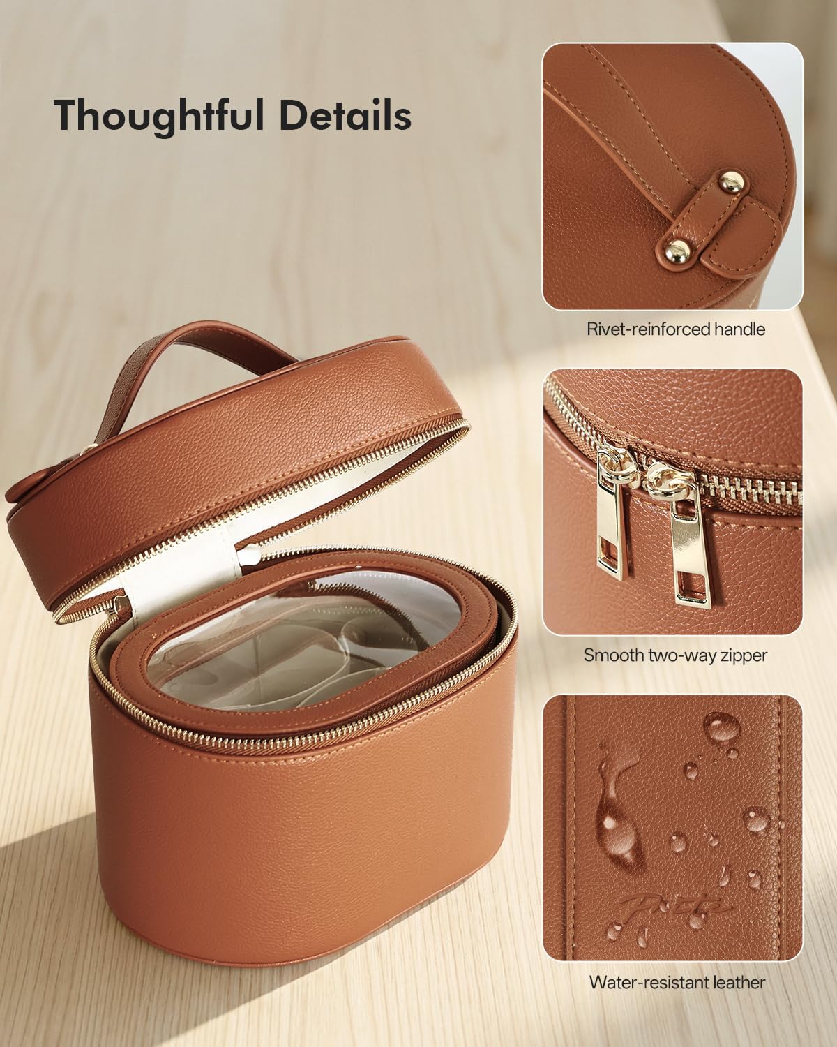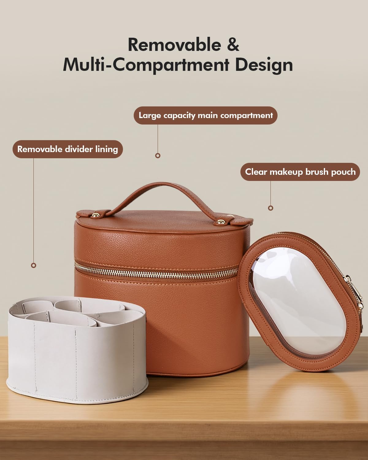 Prite PU Leather Makeup Bag with Removable Compartments