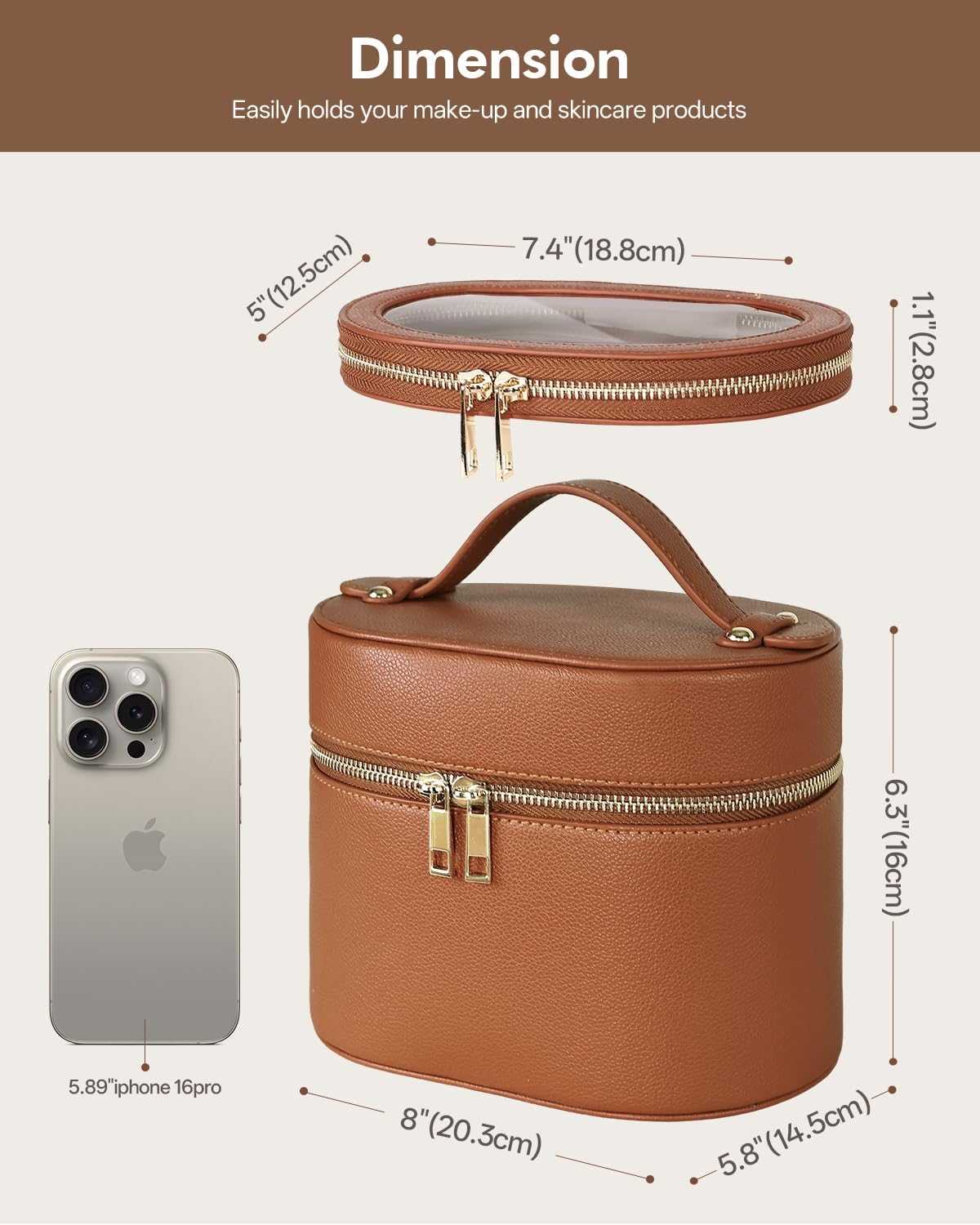 The thoughtfully designed interior accommodates both bottled cosmetics and skincare products with ease. Store your foundations, serums, makeup palettes, brushes, and other essentials all in one place. The sturdy construction ensures that even glass bottles and delicate items remain protected during travel or daily use.