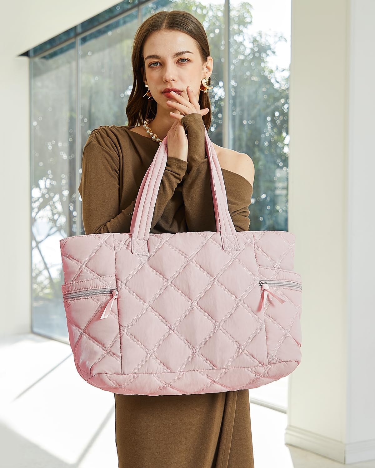 The Prite Quilted Puffer Tote seamlessly transitions between different roles in your life. Use it as a sophisticated work bag that accommodates your laptop, documents, and lunch. Take it as a travel companion with enough room for in-flight essentials and reading materials. It functions equally well as a gym bag, nurse tote, or everyday carryall. The versatile pink color adds a stylish touch to any outfit while remaining professional enough for workplace settings.